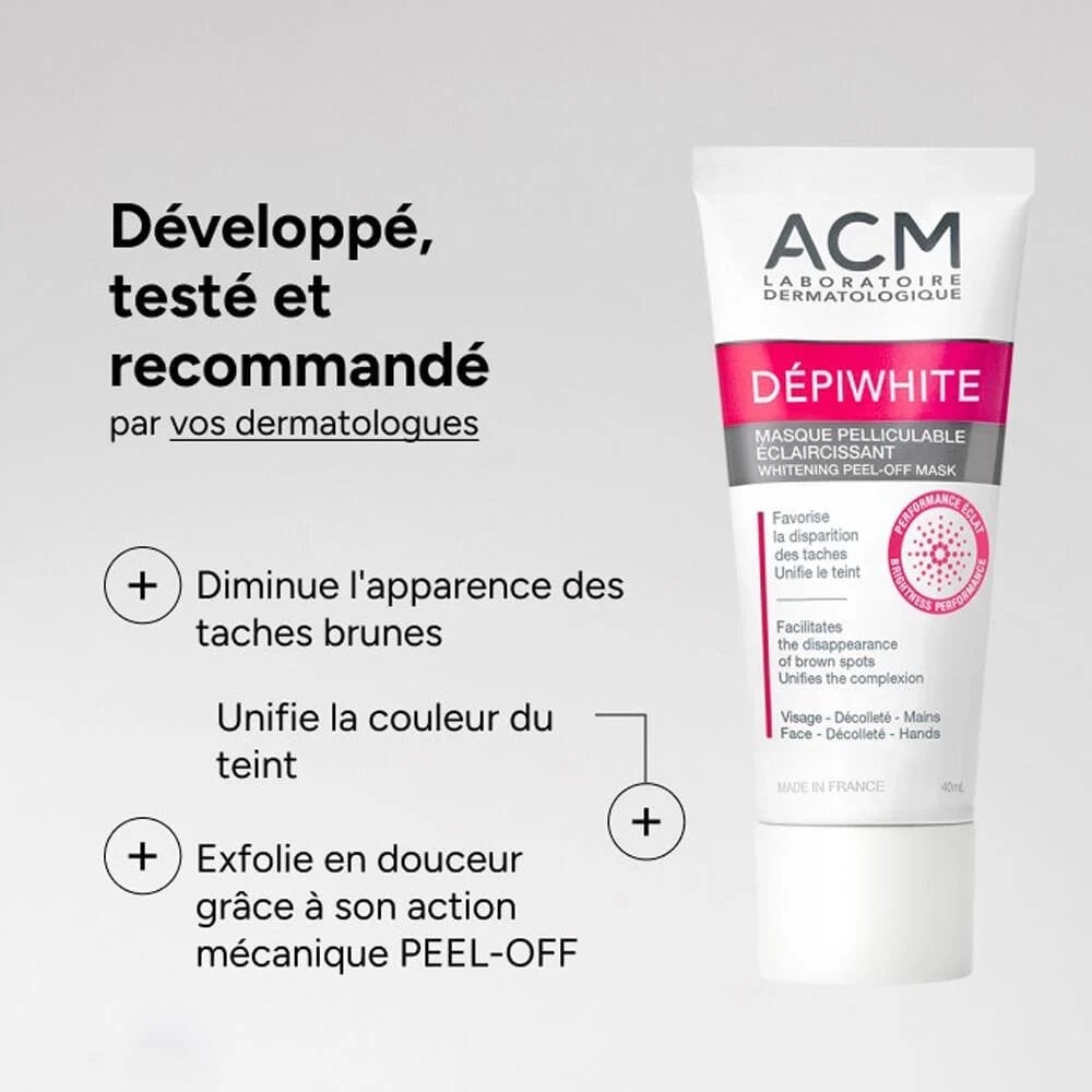 ACM Dépiwhite Masque Pelliculable Eclaircissant illumine le teint en atténuant visiblement les taches pigmentaires.