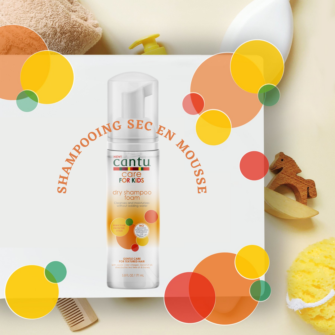 Conçu pour nettoyer et hydrater les boucles et les vagues douces sans ajouter d’eau, le Shampooing mousse sec Cantu Care for Kids est parfait pour une coiffure protectrice. Il est formulé avec du vinaigre de cidre de pomme, de l’huile de noix de coco, du beurre de karité, de l’huile d’arbre à thé et du miel.
