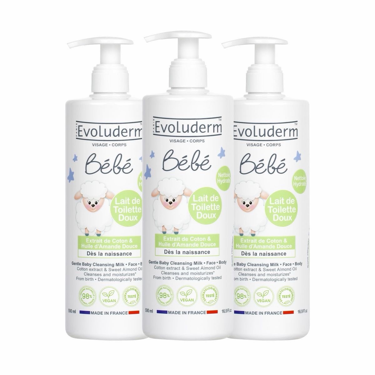Evoluderm Bébé Lait de Toilette Doux Visage et Corps 500ML